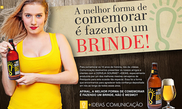 Para comemorar esses 10 anos de existência e agradecer a confiança depositada em nós, apresentamos a CERVEJA GOURMET +IDEIAS. Um presente para nossos clientes e amigos, que sempre estiveram conosco nessa caminhada!